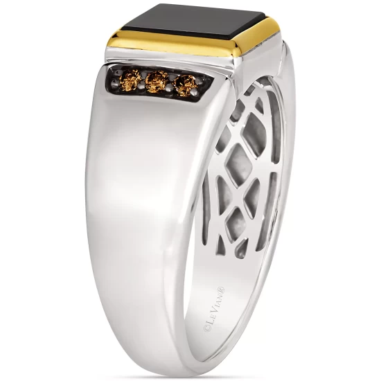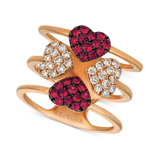 Shimmering clusters of round-shape rubies and diamonds form beautiful heart designs on this romantically chic statement ring from Le Vian.