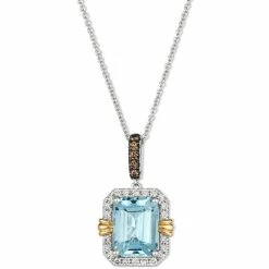 Le Vian creates a beautiful blend of color and shine with this elegant pendant necklace, set with an emerald-cut Sea Blue Aquamarine® accented with Nude Diamonds™ and Chocolate Diamonds®.