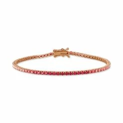 Elegant round-shape rubies and pink sapphires are set with skill and artistry in this dazzling pink-themed link bracelet from Le Vian.