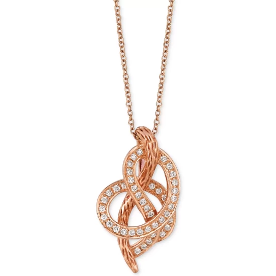 The exceptional fiery beauty of high quality round-shape diamonds is magnificently reflected in the reddish tones of 14k rose gold in this stunning swirl necklace (1/4 ct. t.w.) designed by Le Vian. Approximate length: 18″. Approximate drop: 1-1/4″.