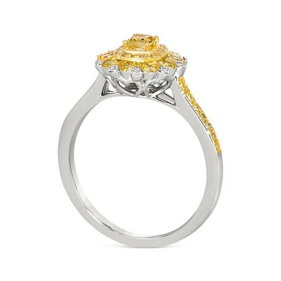 A beautiful starflower design is created using cushion- and round-cut Sunny Yellow Diamonds® with twinkling Vanilla Diamond® accents in a two-tone Le Vian ring.