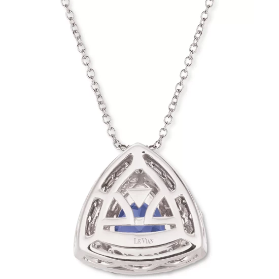 Le Vian® brings you color and style from new angles with this trillion-cut Blueberry Tanzanite® pendant necklace set within triangle halos of Nude Diamonds™ and Chocolate Diamonds®, in polished white gold.