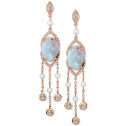 Move to your own beat with the distinctive look of these oval-shape turquoise aquaprase drop earrings accented with cultured freshwater pearls and round-shape white topaz.