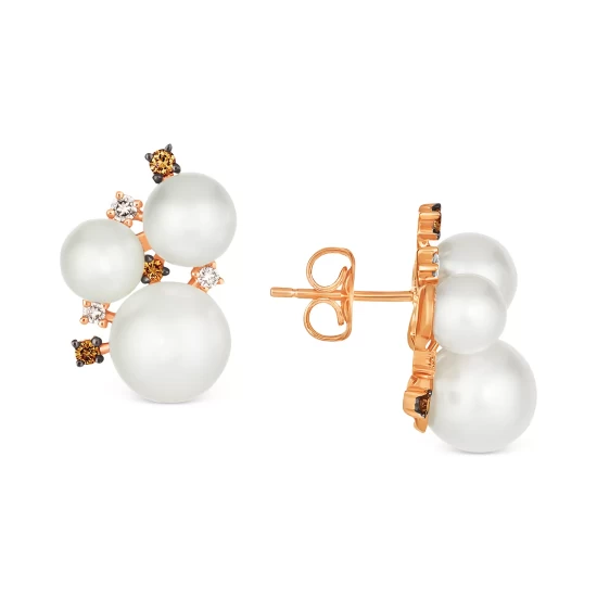 Trios of Vanilla Pearls™ form beautiful clusters with Chocolate Diamonds® and Nude Diamonds™ in these enchanting stud earrings, designed by Le Vian.